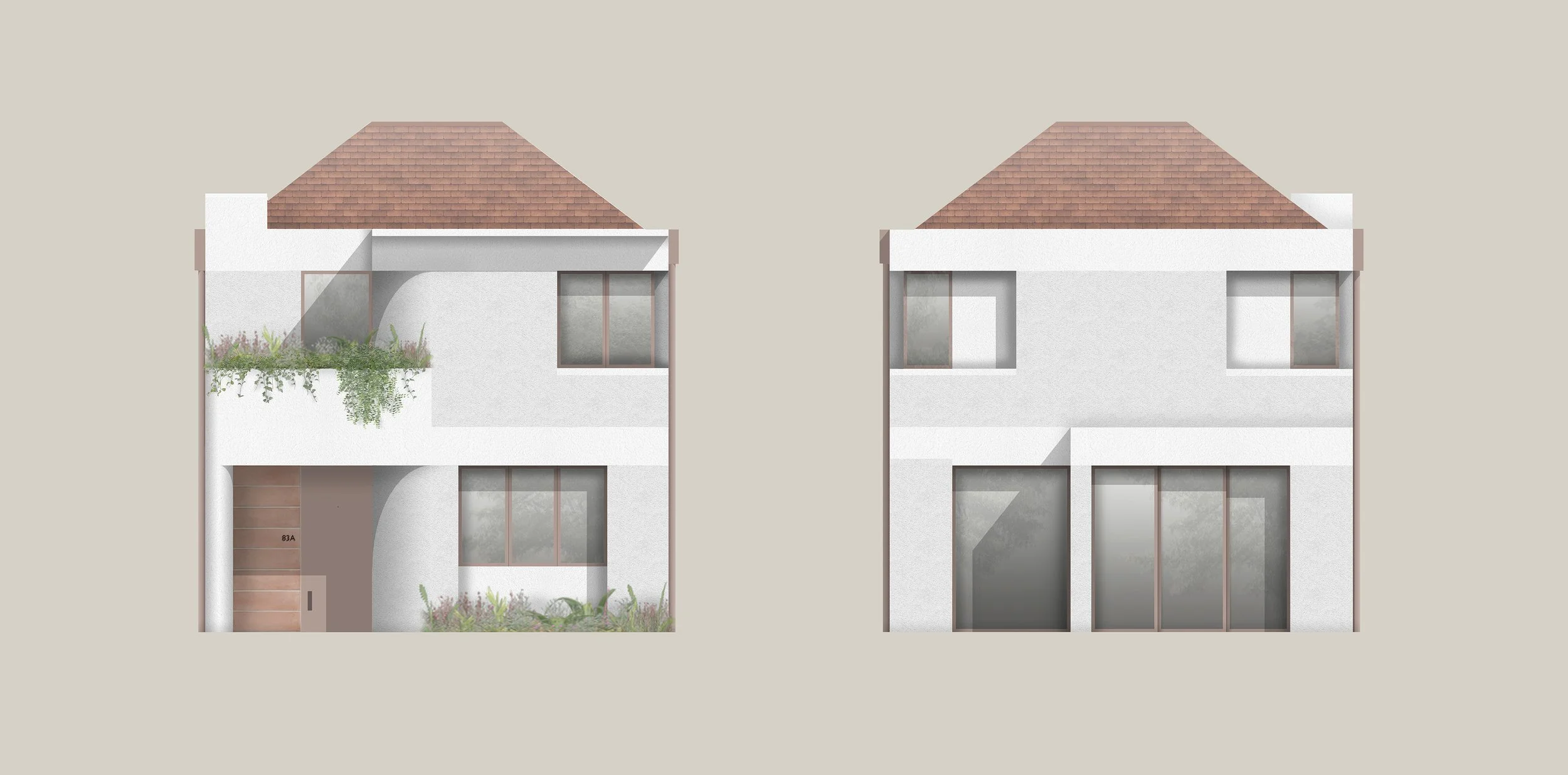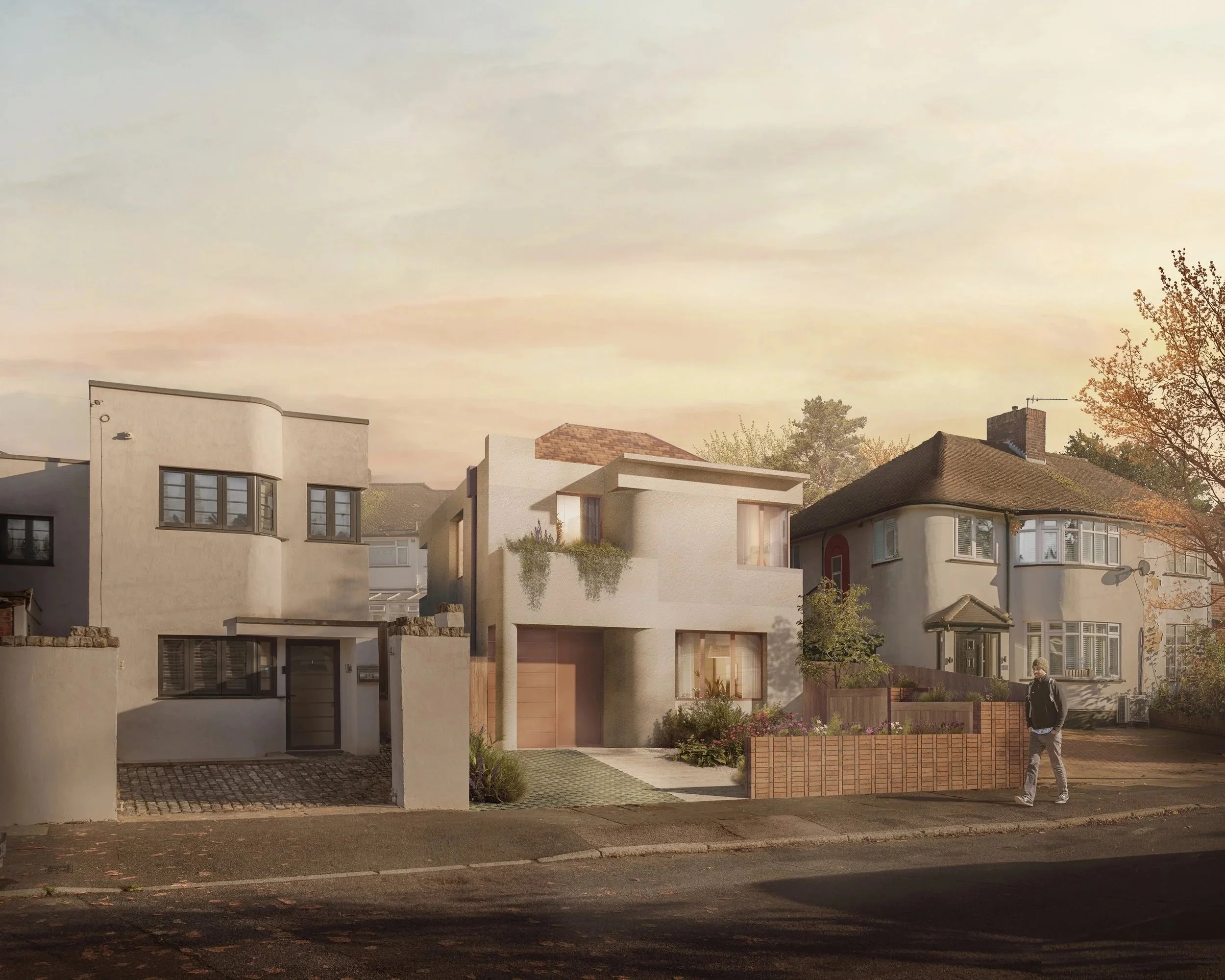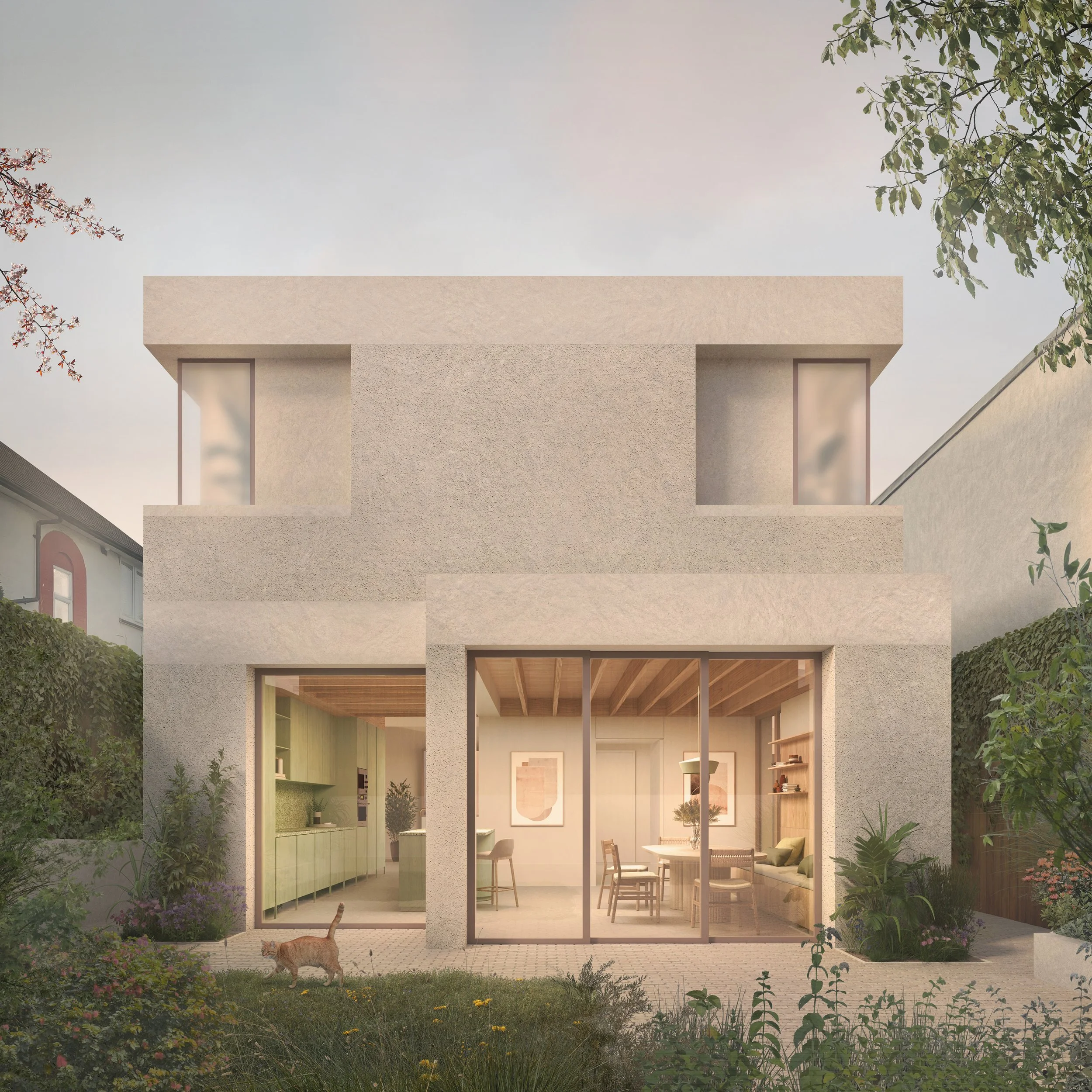 This proposal is for a new-build family home on a vacant North London site, marking a second collaboration with our clients Caswell & Dainow. It reuses underutilised garden land to deliver a high-quality dwelling that promotes good design and generous living standards.