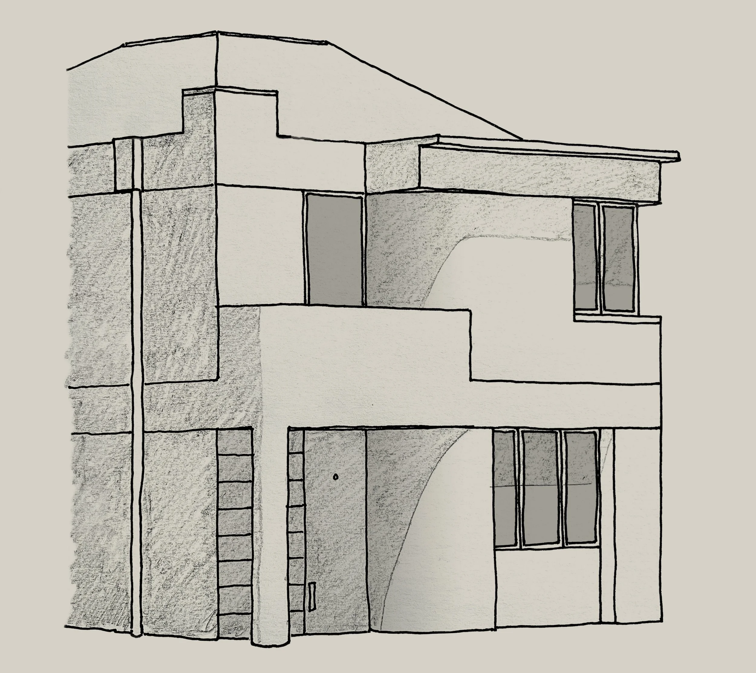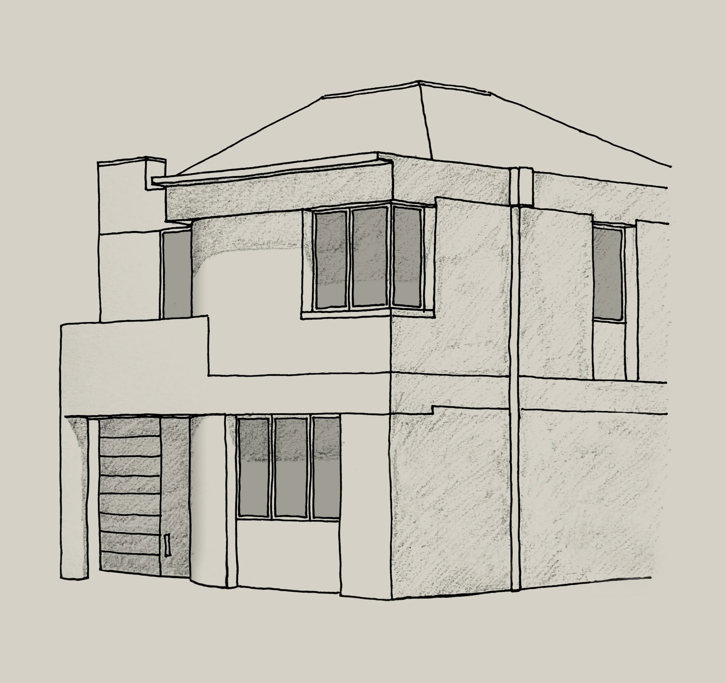 The architecture playfully reinterprets the surrounding Modernist suburban context, incorporating a curved front bay, corner glazing, and a chimney that allows the eaves line to step in response to neighbouring properties. The front elevation is carefully composed to provide depth and a dignified street presence.
