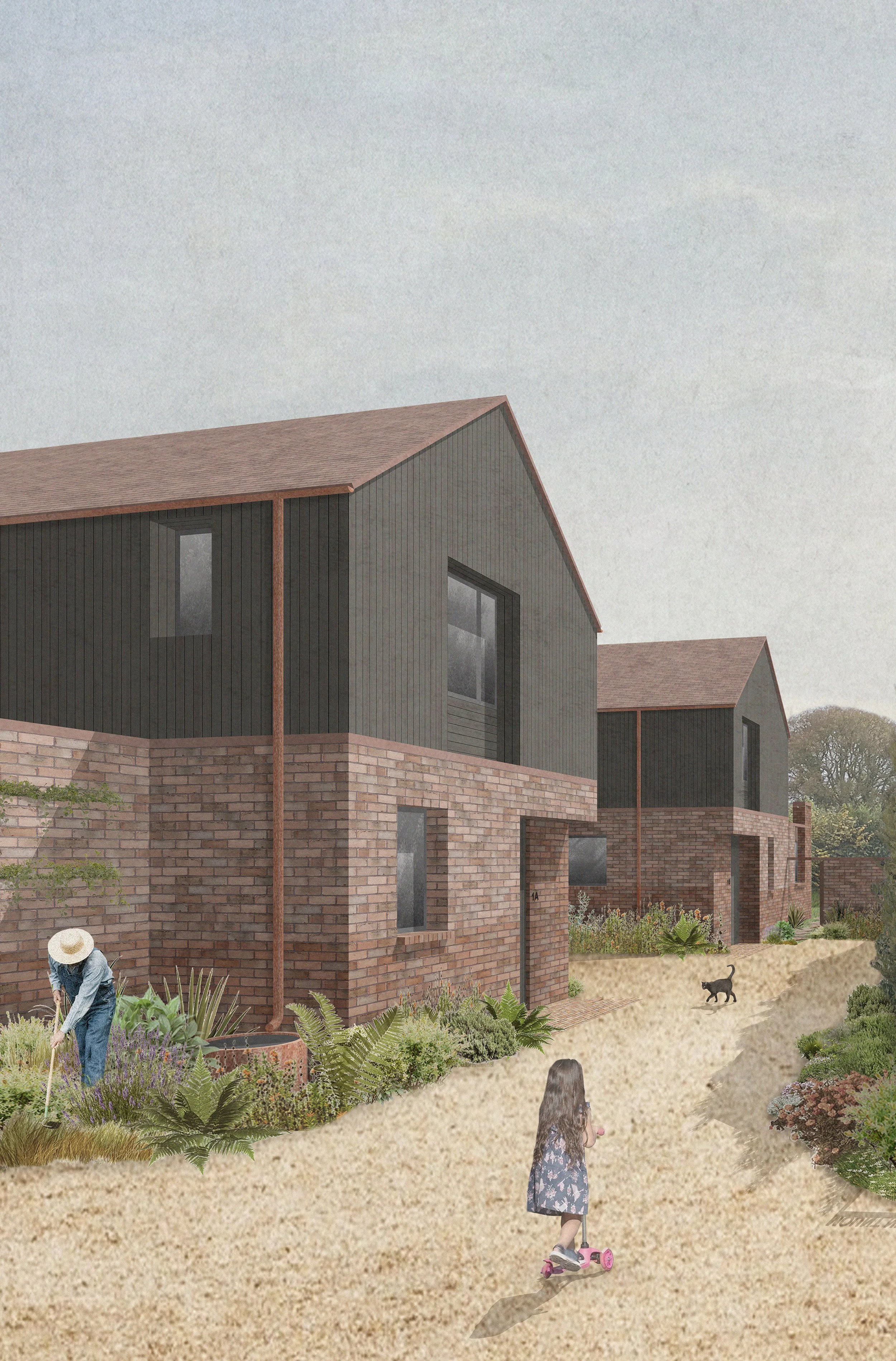 The pitched roof forms, with gables presented toward the road, ensure the new dwellings will be well integrated into the wider street-scene.